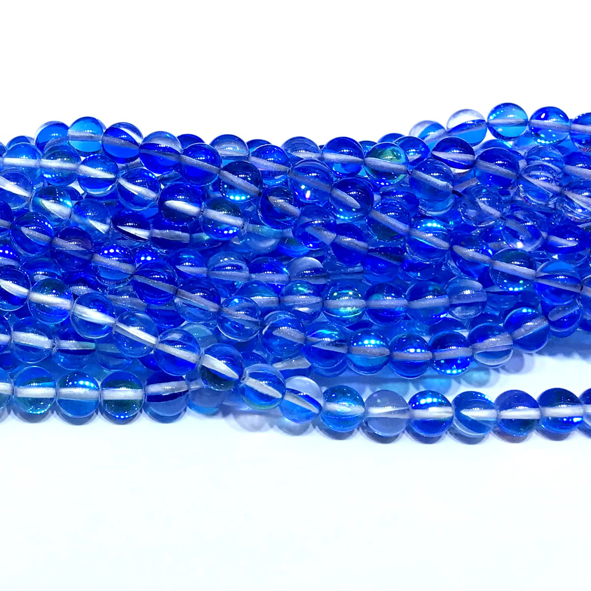CMS311 Synthetic Moonstone Beads Smooth Round 8mm 15" Strand