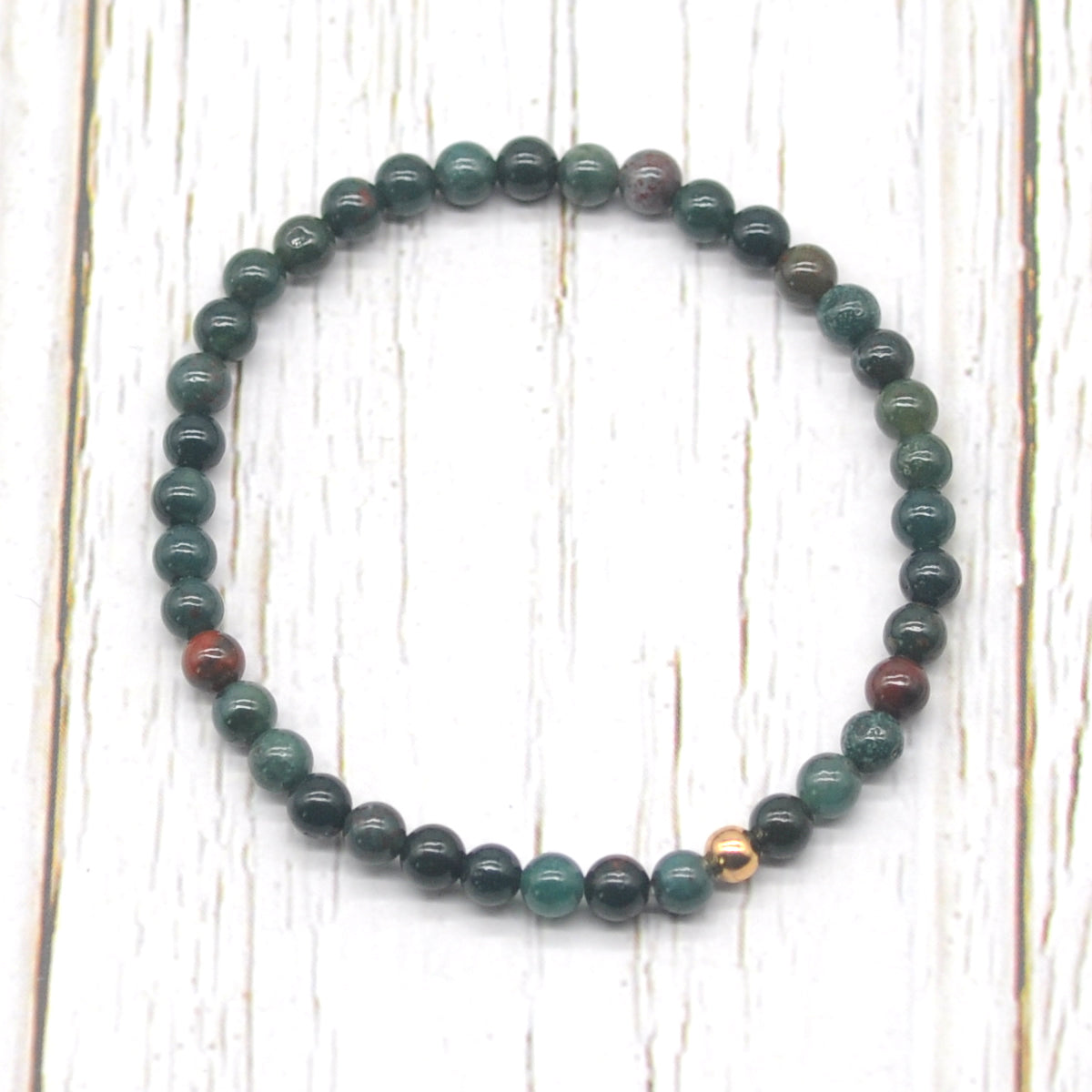 CGB778 Indian Bloodstone Beaded Stretch Bracelet Round 4mm