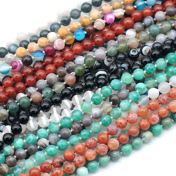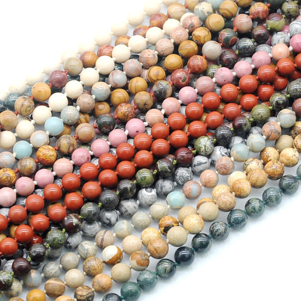 GMN383 Hand-Knotted Black Agate, Rose Quartz & White Howlite 108 Beads Mala Necklace