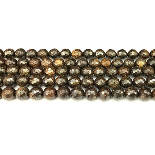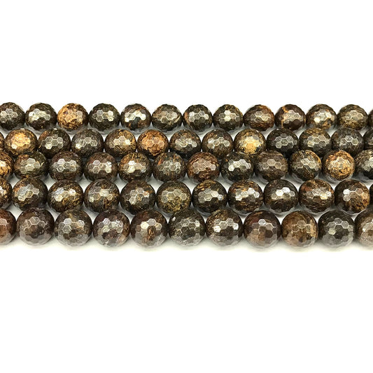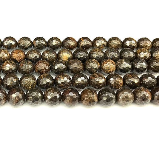 CBZ23 Bronzite Gemstone Beads Faceted Round 10mm 15" Strand