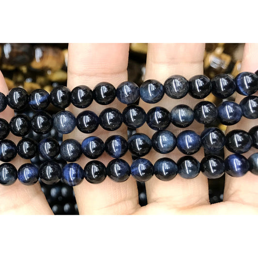 CTE167 Blue Tiger Eye Beads Smooth Round 8mm 15" Strand