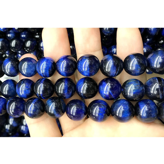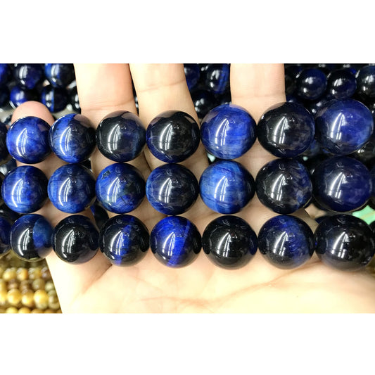 CTE159 Blue Tiger Eye Beads Smooth Round 12mm 15" Strand