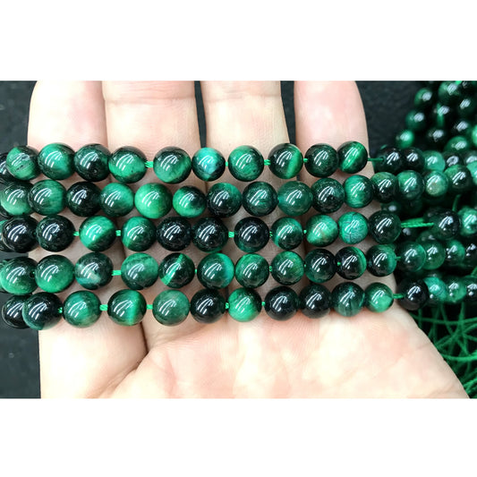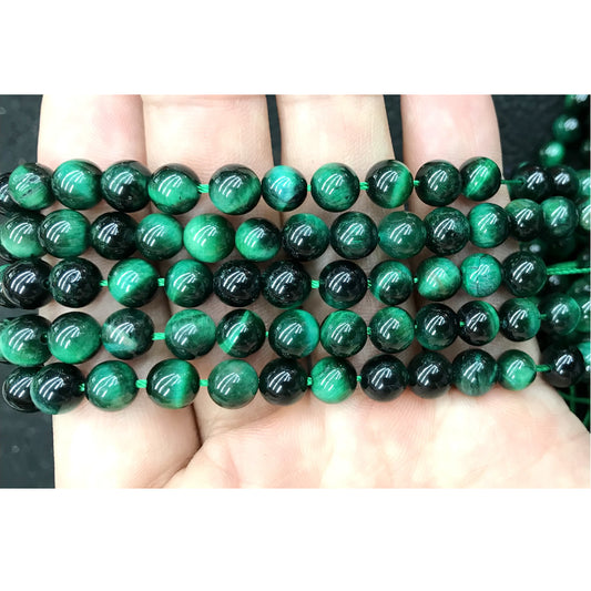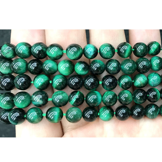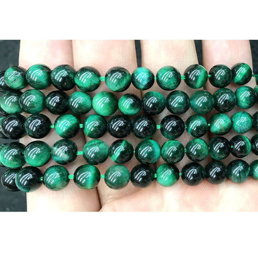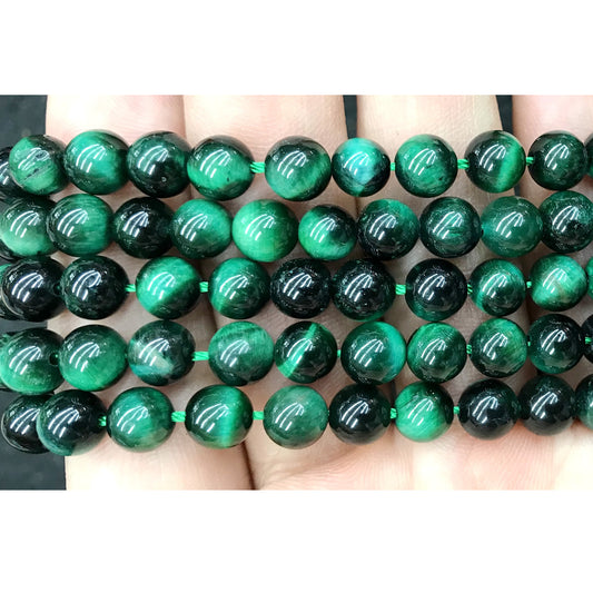 CTE177 Green Tiger Eye Beads Smooth Round 8mm 15" Strand