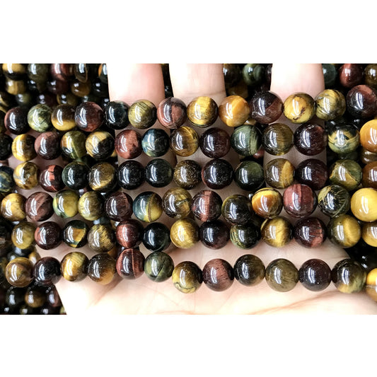 CTE92 Grade AB Colorful Tiger Eye Beads Smooth Round 8mm 15" Strand