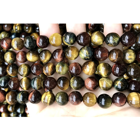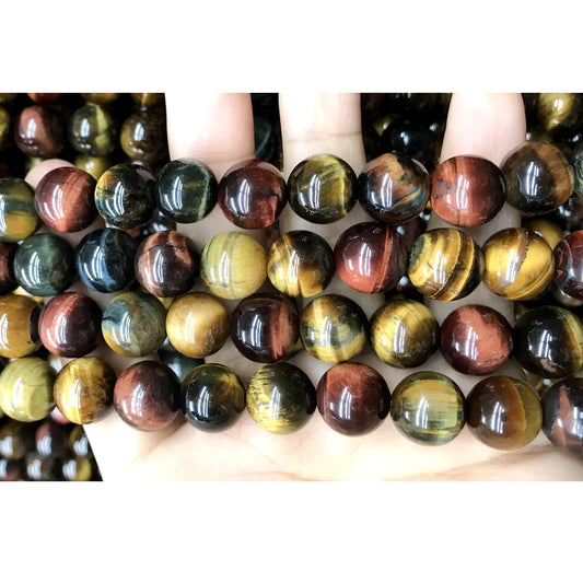CTE93 Grade AB Colorful Tiger Eye Beads Smooth Round 10mm 15" Strand