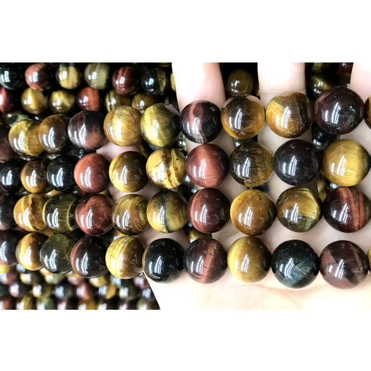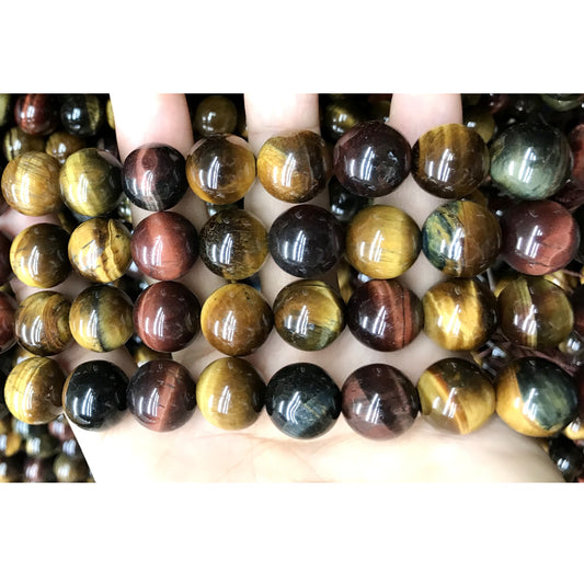 CTE94 Grade AB Colorful Tiger Eye Beads Smooth Round 12mm 15" Strand