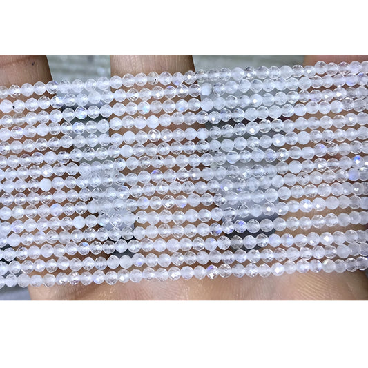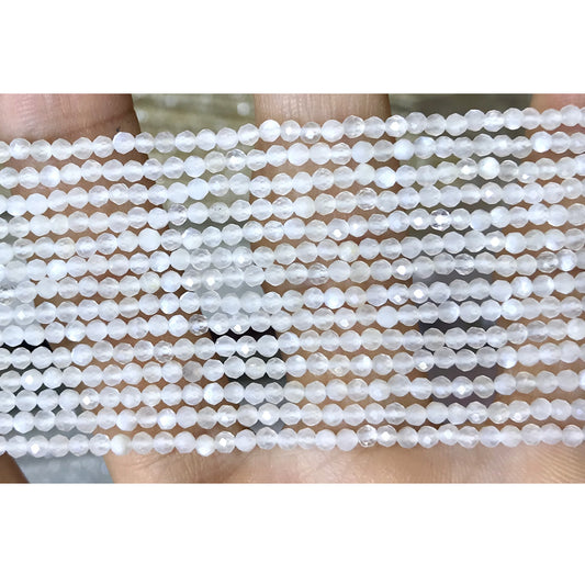 CTG101 White Moonstone Beads Faceted Round 2mm 15" Strand