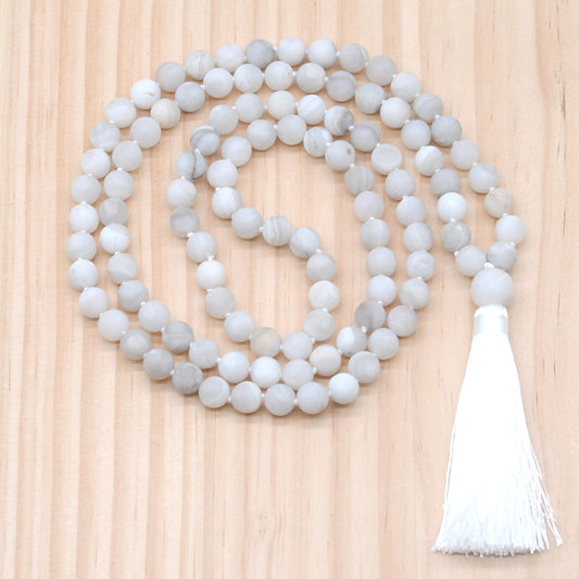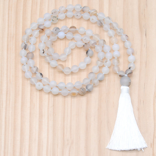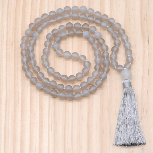 GMN06 Hand-Knotted Matte Grey Agate 108 Beads Mala NecklaceRegular price From $7.68 USDRegular priceUnit price per$9.60 USDSale price From $7.68 USDSale