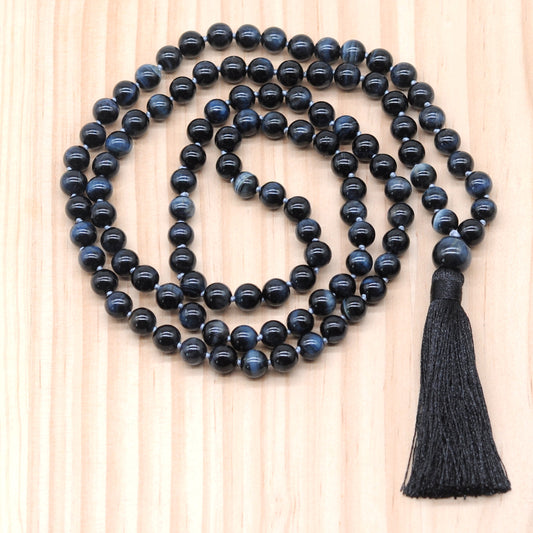 GMN110 Hand-Knotted Smooth Blue Tiger Eye 108 Beads Mala NecklaceRegular price From $15.00 USDRegular priceUnit price per-