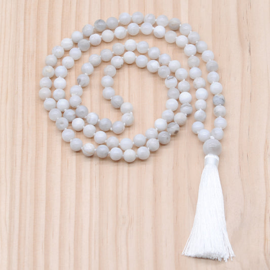 GMN115 Hand-Knotted Smooth White Crazy Agate 108 Beads Mala NecklaceRegular price From $9.60 USDRegular priceUnit price per-