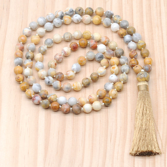 GMN10 Hand-Knotted Matte Yellow Crazy Agate 108 Beads Mala NecklaceRegular price From $9.60 USDRegular priceUnit price per-
