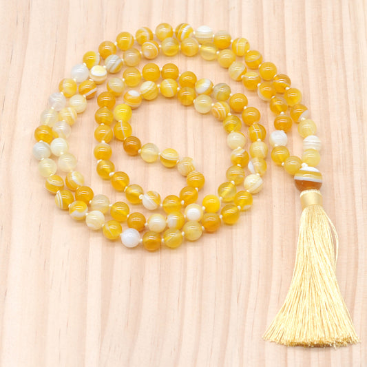 GMN119 Hand-Knotted Smooth Yellow Banded Agate 108 Beads Mala NecklaceRegular price From $8.00 USDRegular priceUnit price per-