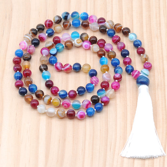 GMN123 Hand-Knotted Smooth Colorful Banded Agate 108 Beads Mala NecklaceRegular price From $8.00 USDRegular priceUnit price per-