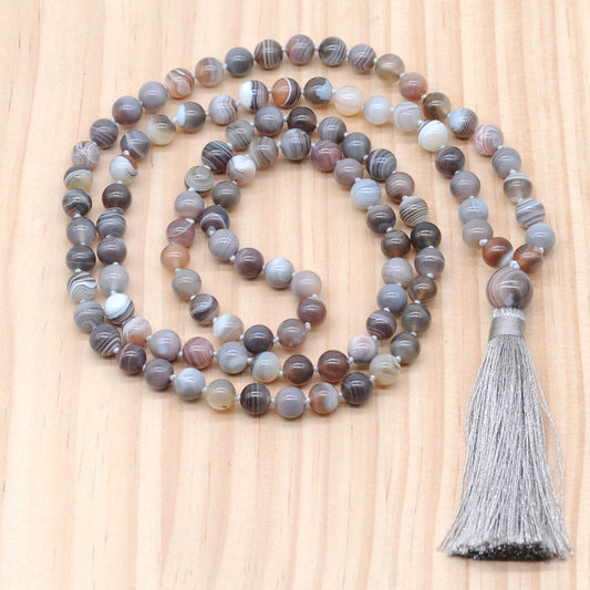 GMN133 Hand-Knotted Smooth Botswana Agate 108 Beads Mala NecklaceRegular price From $18.00 USDRegular priceUnit price per-