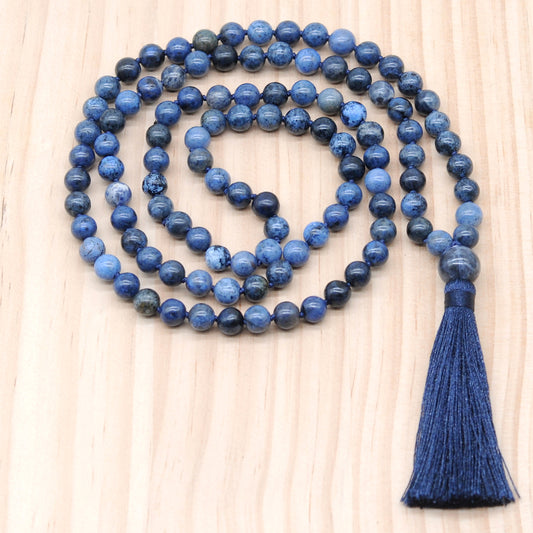 GMN143 Hand-Knotted Smooth Dumortierite 108 Beads Mala NecklaceRegular price From $0.00 USDRegular priceUnit price per-