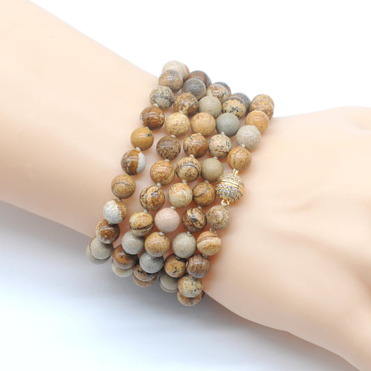 GMN283 Hand-Knotted Picture Jasper Beaded Necklace 8mm 10mm