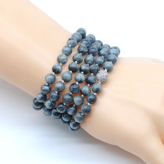 GMN295 Hand-Knotted Eagle Eye Jasper Beaded Necklace 8mm 10mm
