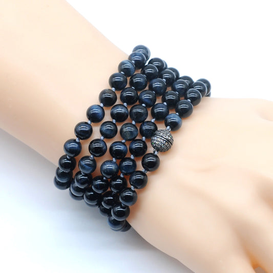 GMN305 Hand-Knotted Blue Tiger Eye Beaded Necklace 8mm 10mm