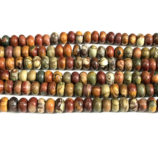 CJP617 Picasso Jasper Beads Smooth Rondelle 5x8mm 15" Strand