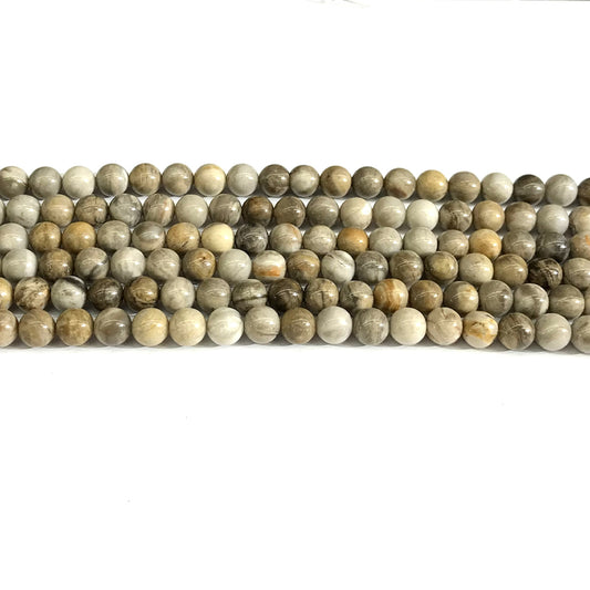 CJP626 Silver Leaf Jasper Beads Smooth Round 6mm 15" Strand