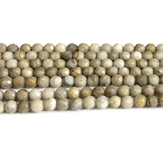 CJP633 Silver Leaf Jasper Beads Faceted Round 6mm 15" Strand