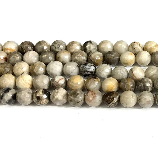 CJP634 Silver Leaf Jasper Beads Faceted Round 8mm 15" Strand