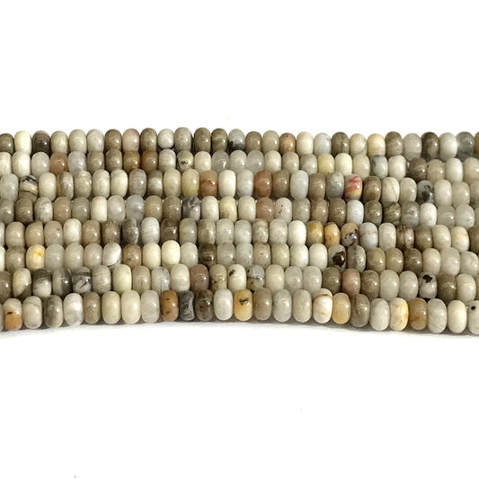 CJP638 Silver Leaf Jasper Beads Smooth Rondelle 4x6mm 15" Strand