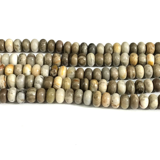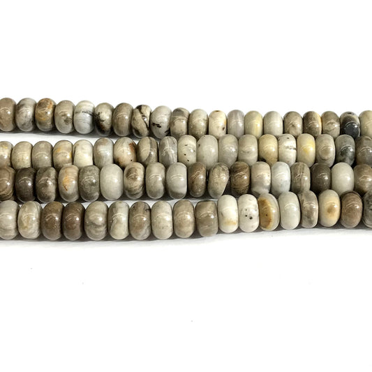 CJP640 Silver Leaf Jasper Beads Smooth Rondelle 6x10mm 15" Strand