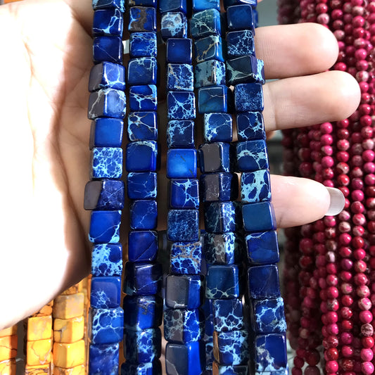 CJP556 Sea Sediment Jasper Beads Smooth Cube 8*8mm 15" Strand