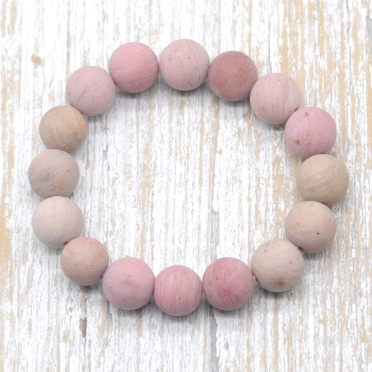 CGB161 Pink Wood Jasper Beads Stretch Bracelet Matte Round 10mm 12mm