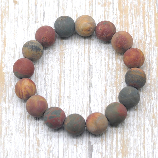CGB163 Picasso Jasper Beads Stretch Bracelet Matte Round 10mm 12mm
