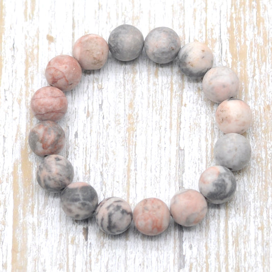 CGB164 Pink Zebra Jasper Beads Stretch Bracelet Matte Round 10mm 12mm