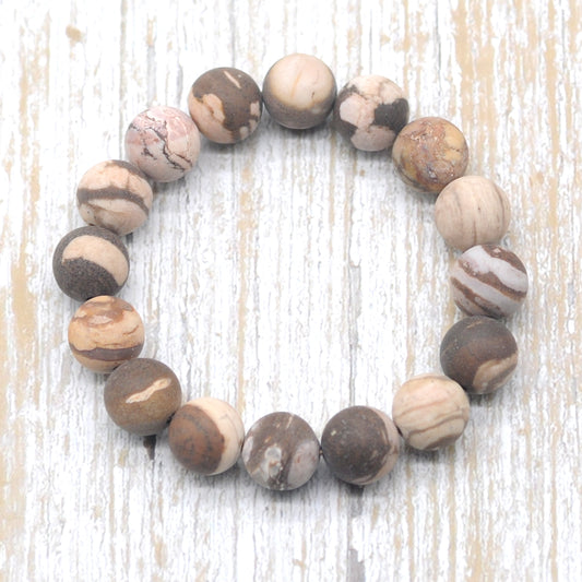 CGB165 Australian Zebra Jasper Beads Stretch Bracelet Matte Round 10mm 12mm