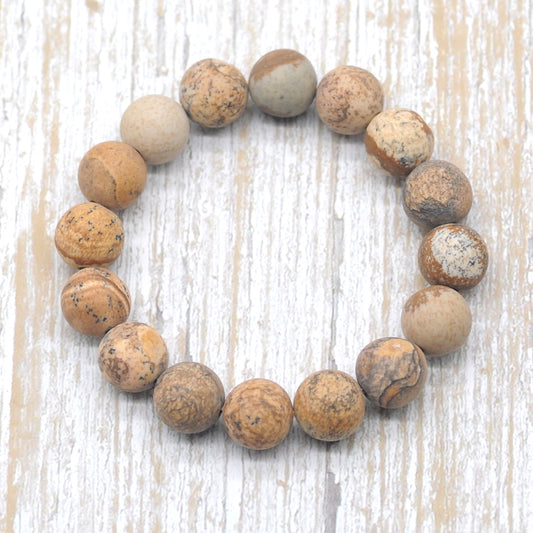 CGB166 Picture Jasper Beads Stretch Bracelet Matte Round 10mm 12mm