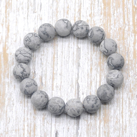 CGB167 Grey Picture Jasper Beads Stretch Bracelet Matte Round 10mm 12mm