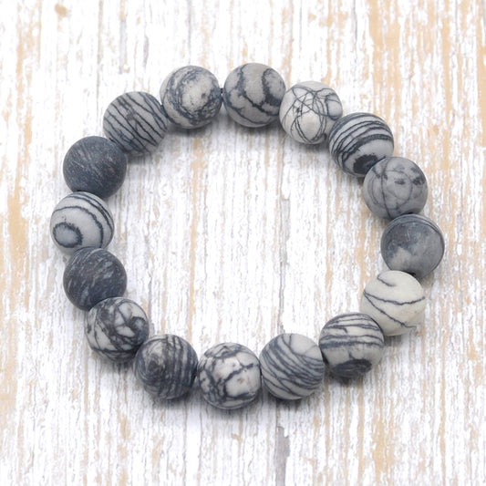 CGB168 Black Net Jasper Beads Stretch Bracelet Matte Round 10mm 12mm