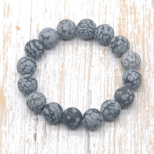 CGB170 Snowflake Obsidian Beads Stretch Bracelet Matte Round 10mm 12mm