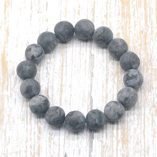 CGB171 Black Labradorite Beads Stretch Bracelet Matte Round 10mm 12mm