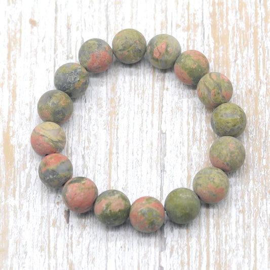 CGB174 Unakite Gemstone Beads Stretch Bracelet Matte Round 10mm 12mm