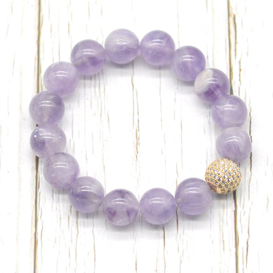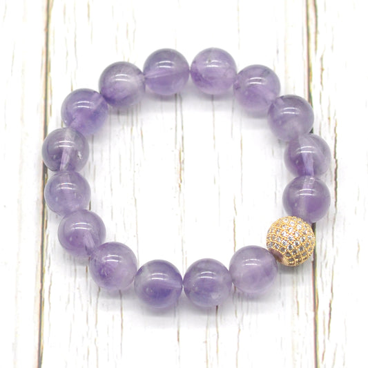 CGB205 Lavender Amethyst With Zircon Ball Stretch Bracelet Round 10mm 12mm