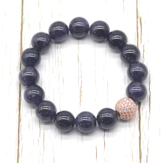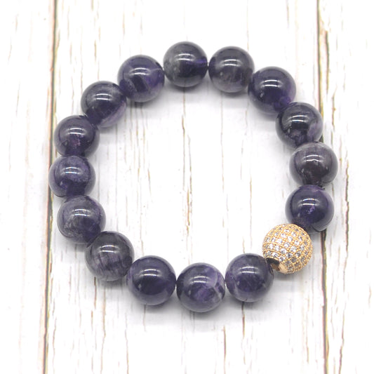 CGB206 Dark Amethyst With Zircon Ball Stretch Bracelet Round 10mm 12mm