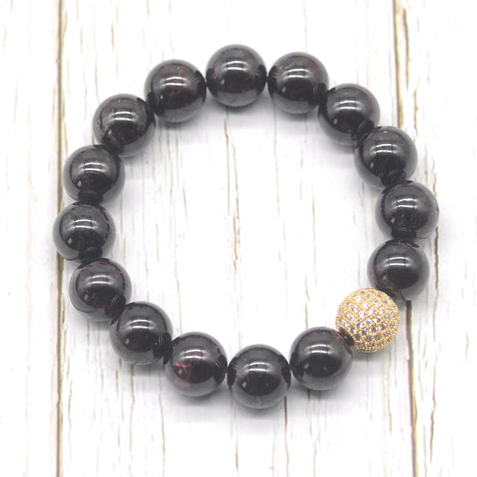 CGB208 Garnet With Zircon Ball Stretch Bracelet Round 10mm 12mm