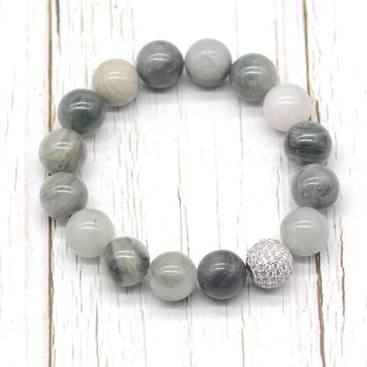 CGB211 Seaweed Quartz With Zircon Ball Stretch Bracelet Round 10mm 12mm