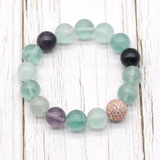 CGB212 Fluorite With Zircon Ball Stretch Bracelet Round 10mm 12mm