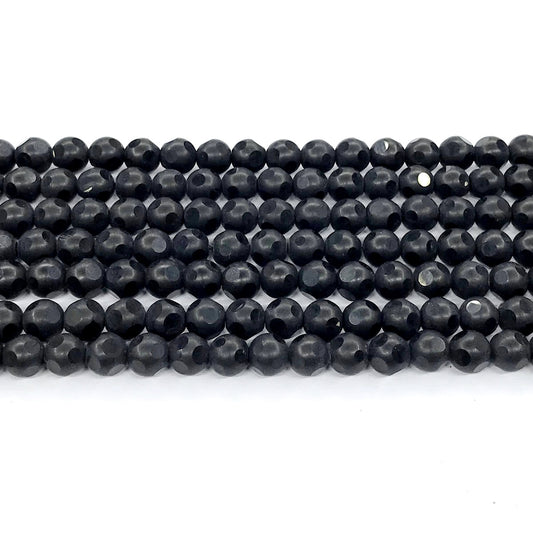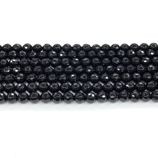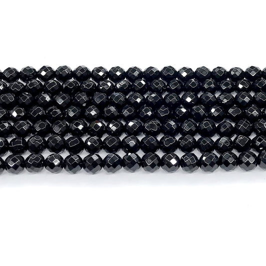 CAG201 Black Agate Beads Faceted Round 6mm 15" Strand