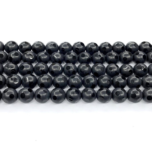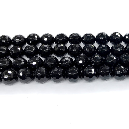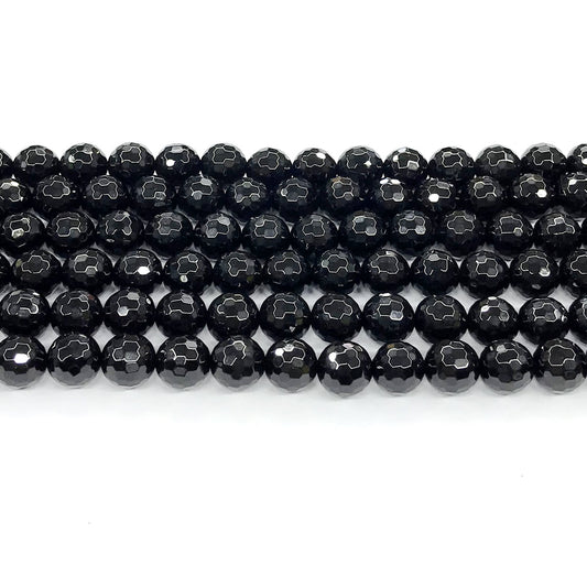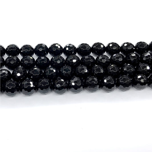 CAG210 Black Agate Beads Faceted Round 10mm 15" Strand