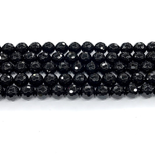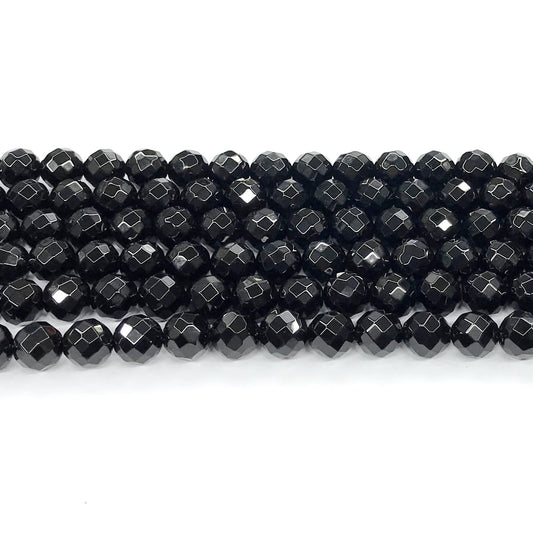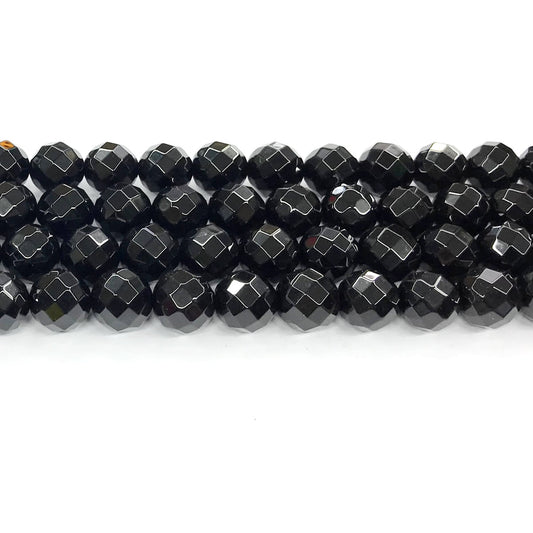 CAG209 Black Agate Beads Faceted Round 8mm 15" Strand