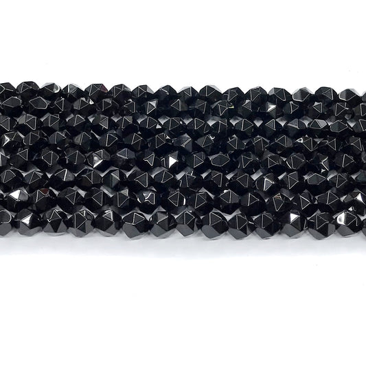 CAG215 Black Agate Beads Faceted Nuggets 6mm 15" Strand