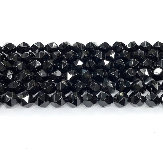 CAG216 Black Agate Beads Faceted Nuggets 8mm 15" Strand
