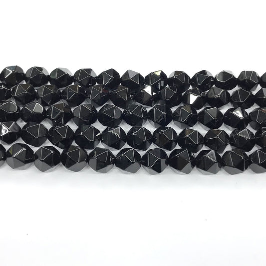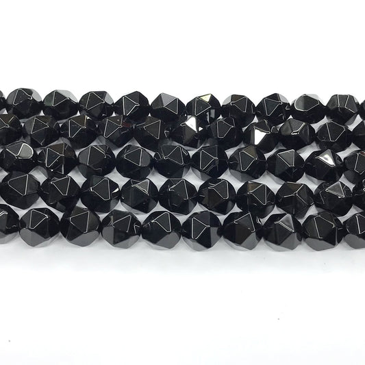CAG217 Black Agate Beads Faceted Nuggets 10mm 15" Strand